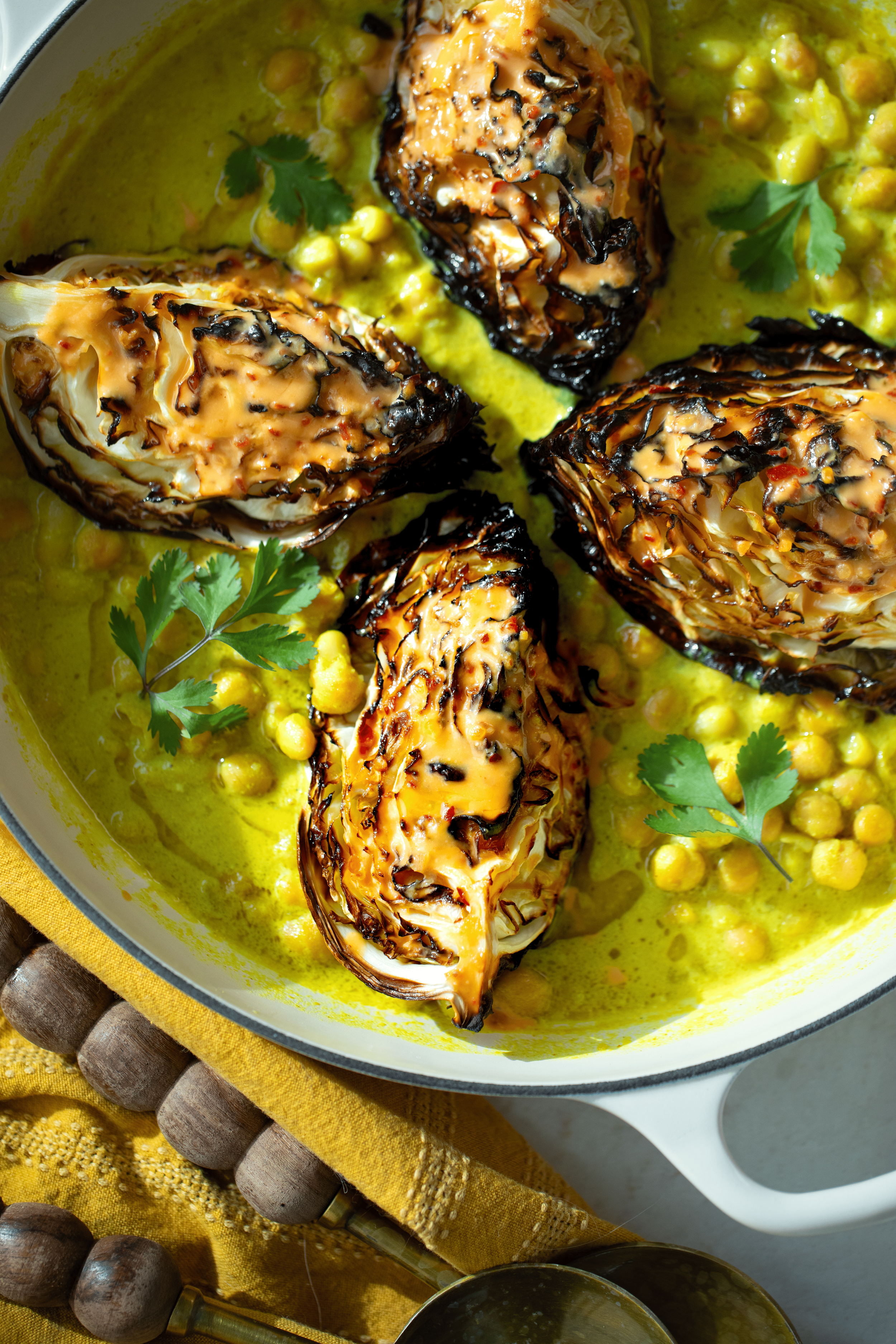Thai-Inspired Coconut Curry with Beans, Chickpeas & Roasted Cabbage