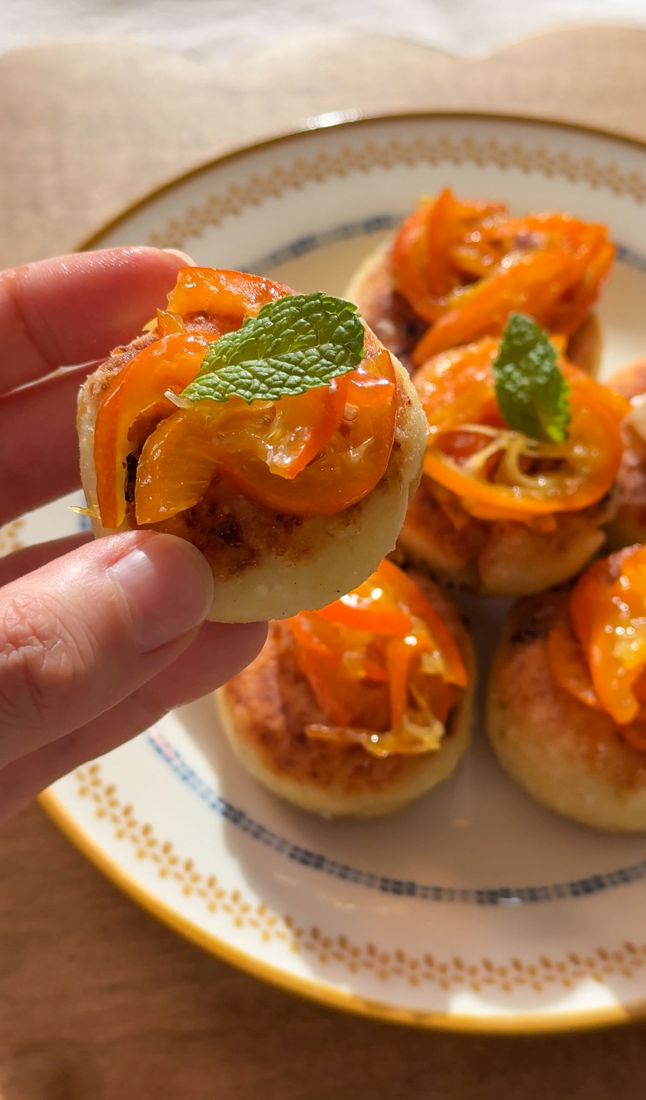 Leftover syrniki can be stored in an airtight container in the refrigerator for up to three days. Reheat gently in a skillet over low heat until warmed through and lightly crisped. The mandarin kumquat compote can be stored separately in the fridge and served chilled or slightly warmed.