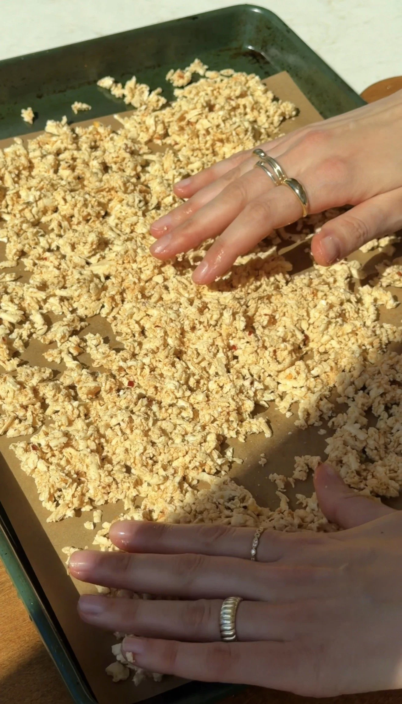 - Preheat the oven to 400°F. Shred the tofu using a box grater.