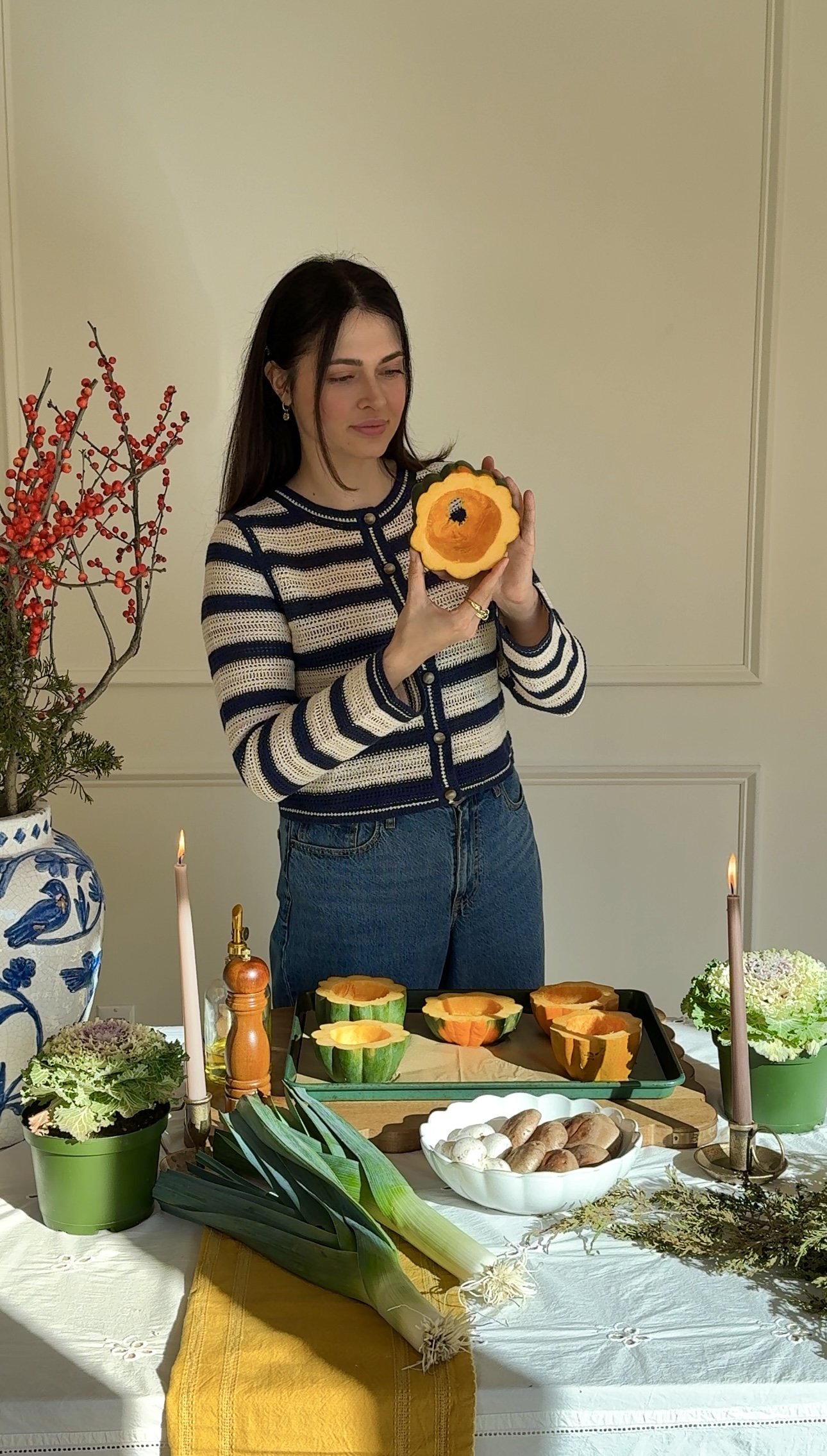My December feed on my socials is filled with sweet desserts and pastries and rightfully so, this month is the biggest baking month of the year! But all those sweet treats made me crave something savory, and what do you know? I was drawn to this gorgeous acorn squash at the market. I’ve worked with almost every squash, but never with acorn, so I was excited to cook something up with her!